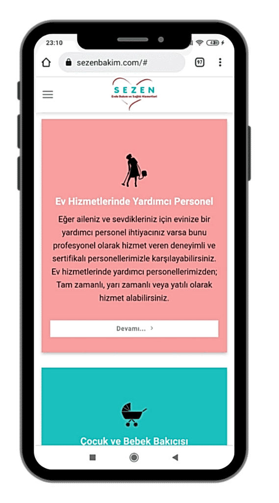 Sezen Evde Bakım ve Özel Sağlık Hizmetleri, müşteri memnuniyetini ön planda tutarak Türkiye'de tercih edilen bir firma olmanın haklı gururunu yaşıyor. Hasta, yaşlı, bebek ve çocuk bakımı ile yardımcı personel hizmetlerimizden istediğinizi seçebilirsiniz. Her zaman yanınızdayız.